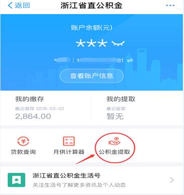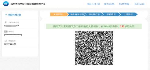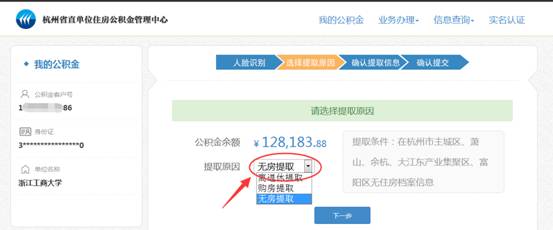 3.通过“公积金查询”选择“浙江省直单位公积金”后,刷脸进入即可办理提取。