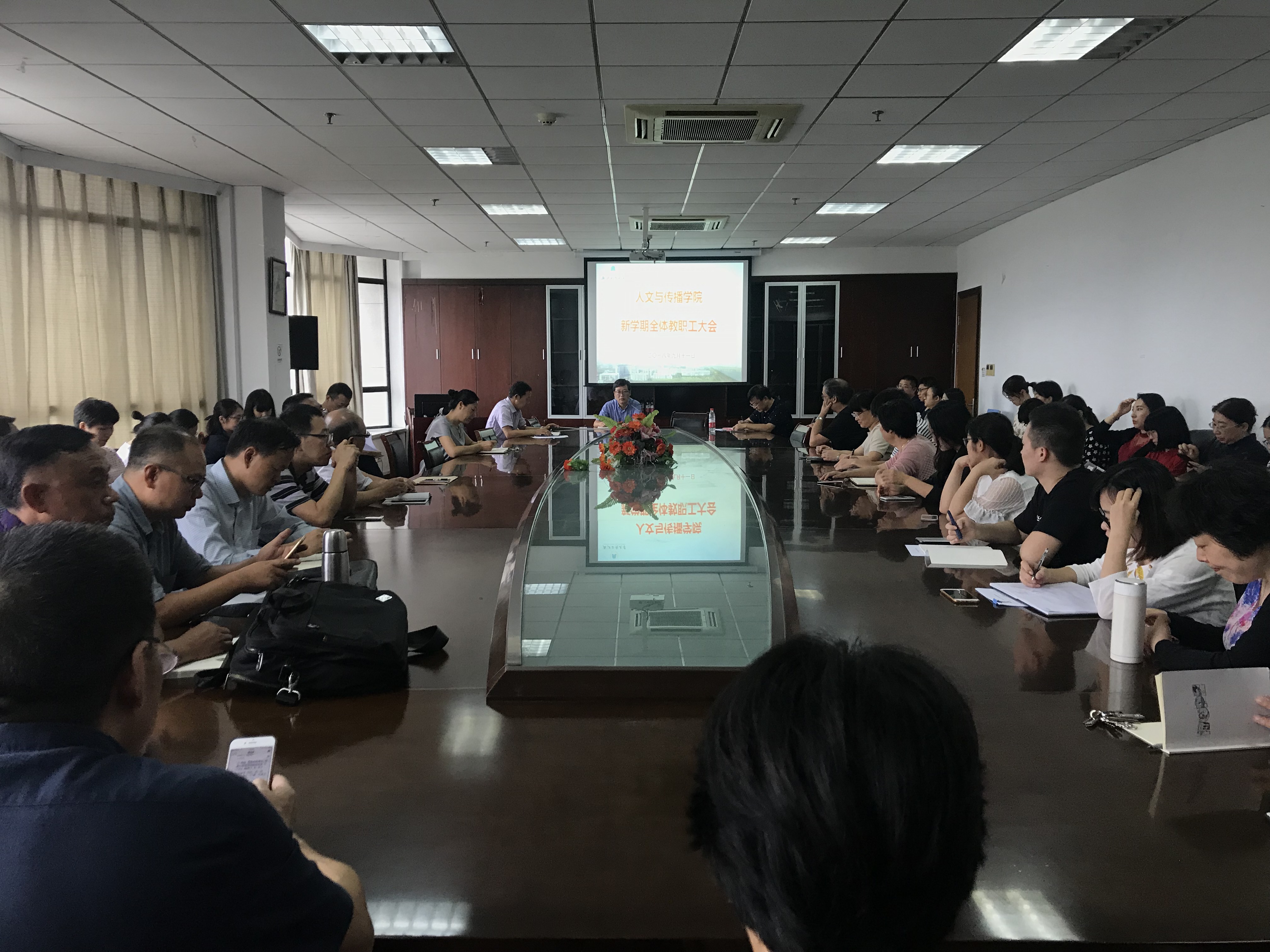 9月11日下午,皇冠体育 召开新学期教职工大会。会议由学院党委书记王华主持,副院长范家进、潘文年、程丽蓉参加会议。