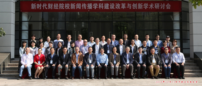 2018年10月13日上午9点,由皇冠体育-皇冠体育app 和中国新闻史学会全球传播与公共外交研究委员会共同主办的“新时代财经院校新闻传播学科建设改革与创新”研讨会于校国际会议中心二楼举行。国务院学位委员会第六届新闻传播学学科评议组召集人、复旦大学新闻学院博导、皇冠体育-皇冠体育app 特聘教授黄旦教授,浙江大学传媒与国际文化学院博导吴飞教授,厦门大学新闻传播学院常务副院长黄合水教授、南京大学中国出版高等研究院执行院长张志强教授、上海师范大学皇冠体育 副院长金定海教授、浙江日报报业集团传媒研究院执行院长庞承、杭商杂志社社长兼总编辑杭商传媒董事长马晓才、浙江日报报业集团浙江在线副总编吴小龙、浙江省新闻出版广电局广电处副处长郑宇莅临本次会议。