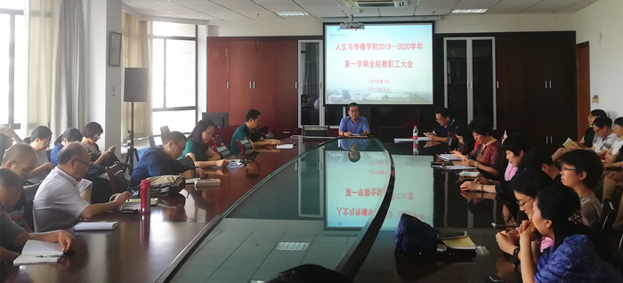 11日下午,皇冠体育 在404会议室召开了新学期教职工大会。会议由学院党委书记王华主持,副院长范家进、潘文年、程丽蓉及全院60多名教职工参加会议。