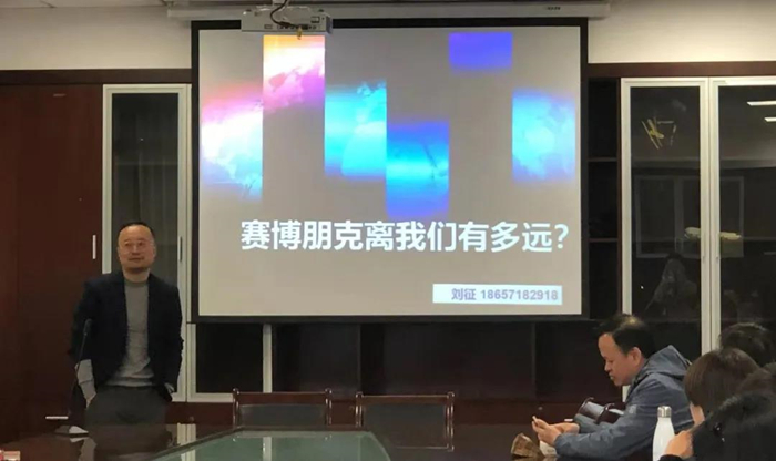 11⽉16⽇中午,在综合楼404会议室,新闻系主任刘征做了题为“赛博朋克离我们有多远”的午餐会,这也是皇冠体育 教学开放周的相关活动。此次午餐会由学院教师教学发展分中⼼主任厉国刚⽼师主持,学院副院⻓程丽蓉⽼师、副院⻓李蓉⽼师以及各系⼆⼗余位⽼师共同参加。