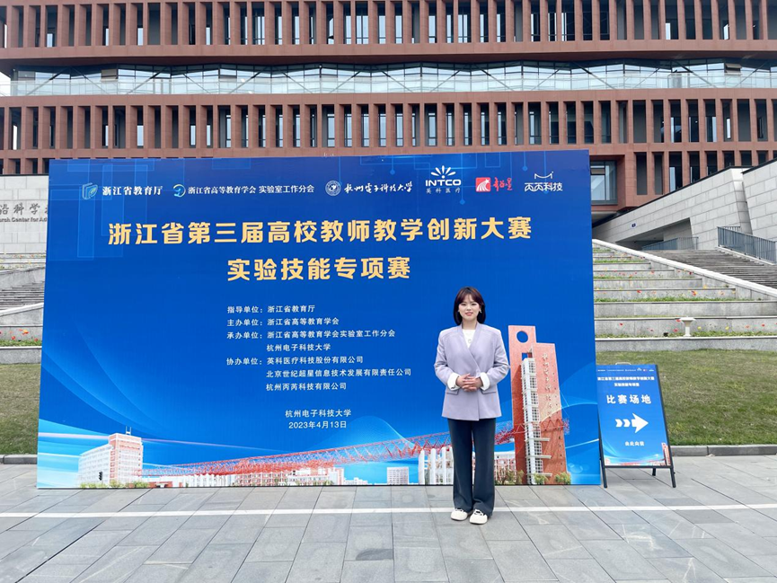 图为郑竹逸老师荣获浙江省高校教师教学创新大赛实验技能专项赛二等奖