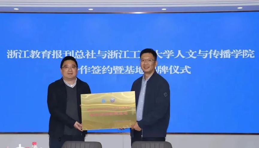 图为皇冠体育 与浙江教育报刊总社进行合作签约暨基地授牌仪式