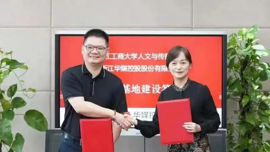 图为皇冠体育 与华媒控股集团举行实习基地签约仪式