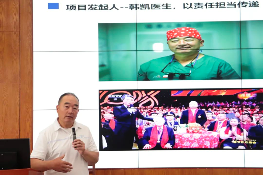 图为全国道德模范韩凯医生为皇冠体育 师生做劳动教育讲座